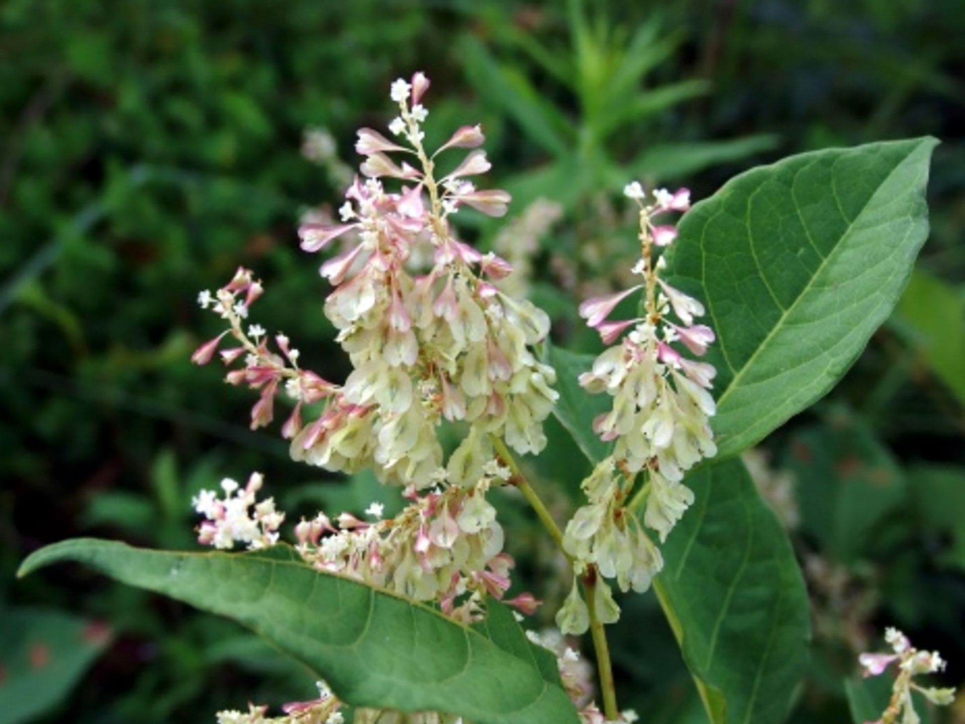 山野で普通に見られ、荒地や崖地などでも太く強靭な地下茎によって繁茂する雌雄異株の多年草。春先に竹の子のように太く赤身のある芽を直立させ、後に枝分かれしながら斜上し、草丈は2m程にもなる。茎は中空で、若いうちは柔らかく、古くなると木質化する。葉は広卵状楕円形~広卵形で互生。7~10月、枝端と葉のわきに総状花序をつけ、白色か紅色の小花をたくさんつける。名は、若葉に止血効果があり、痛みも和らぐとされることから「痛み取り」の詰まったものという。別名の「スカンポ」は、食用にもされる若い茎に酸味があり、中空で茎を折るとポコッと音がすることから。