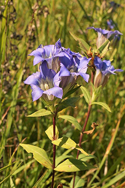日当たりのよい山地の草地に生える多年草。茎は直立して、高さ1mにも達するほどで、葉は柄がなくて細長く、対生につく。花は長さ4,5~6cm、釣り鐘型で大きく5つに裂け、さらにその間に小さな裂片がある。紫色で、内面に茶褐色の斑点があり、茎の先に上向きにいくつも咲かせる。天候に敏感に反応して晴天の時だけ花を開く。根を乾燥したものは「竜胆」(りゅうたん)と呼ばれ漢方薬として使われる。