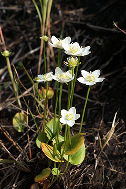 山地草原に生える多年草。花茎は7~30cm、花茎の中央部に無柄の1葉をつけ、混生葉は数枚、長い柄がある。花は白色で径2cmあまり。花弁に入った紋様が美しさを添える。がく片5,花弁5、雄しべ5,雌しべ1からなり、12~22本の糸状に裂開したのは仮雄しべである。花期は10月。名は、花が梅鉢の紋に似たところから。
